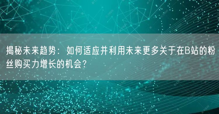 在当今数字化时代,B站作为中国领先的二次元文化社区,不仅聚集了大量热爱动漫、游戏、音乐的年轻用户,更逐渐演变成一个涵盖广泛内容领域的综合性视频平台。随着B站用户基数的不断扩大和用户粘性的增强,其粉丝群体的购买力也呈现出显著的增长趋势。那么,面对这一未来趋势,我们该如何适应并利用B站粉丝购买力增长的机会呢?本文将深入探讨这一问题,为您揭示B站粉丝经济的无限潜力。