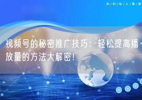 在当今社交媒体盛行的时代,视频号已成为众多创作者展示才华、分享故事的重要平台。然而,面对激烈的竞争,如何提高视频的播放量,让更多人看到你的作品,成为了许多创作者面临的难题。今天,我们就来揭秘一些视频号推广的秘密技巧,助你轻松提升播放量,让你的作品在社交媒体上大放异彩。