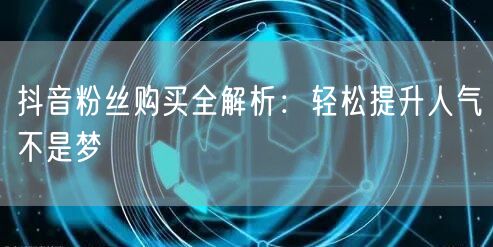 在当今数字化时代,社交媒体已成为品牌推广和个人影响力提升的重要舞台。其中,抖音作为短视频领域的佼佼者,更是吸引了无数内容创作者和营销者的目光。然而,如何在众多的抖音账号中脱颖而出,迅速积累粉丝,成为许多人心中的难题。今天,我们就来深入探讨抖音粉丝购买的全面解析,让您轻松提升人气,不再是梦。
