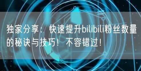 在bilibili(简称B站)这个充满创意与活力的平台上,每一位创作者都梦想着拥有庞大的粉丝群体。粉丝不仅是对你内容的认可,更是推动你频道成长的重要力量。今天,就让我们一起揭开快速提升bilibili粉丝数量的神秘面纱,分享那些不容错过的秘诀与技巧!