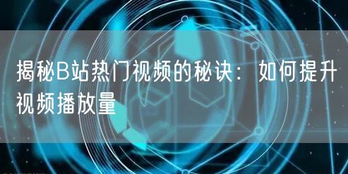 总之,想要在B站打造热门视频并提升播放量,需要创作者在内容创意、互动提升、标签策略等多个方面下功夫。只有不断尝试、持续优化,才能在B站这个竞争激烈的平台上脱颖而出,成为真正的热门创作者。
