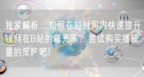在B站这个充满活力的视频分享平台上,每一位UP主都渴望自己的作品能够获得更多的关注和认可。然而,面对海量的视频内容和激烈的竞争环境,如何快速提升视频的曝光率成为了众多UP主关注的焦点。今天,我们就来独家解析一下,如何在短时间内快速提升视频在B站的曝光率,并深入探讨一下购买播放量的策略是否可行。