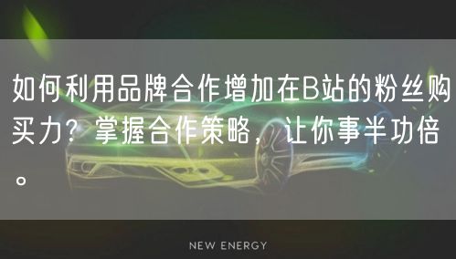 在当今的数字营销时代,B站(哔哩哔哩)作为年轻人聚集的文化社区和视频平台,已成为品牌推广和产品营销的重要阵地。如何在B站上通过品牌合作有效提升粉丝购买力,成为众多品牌和营销者关注的焦点。本文将深入探讨如何利用品牌合作策略,在B站上实现粉丝购买力的显著提升,让你的营销工作事半功倍。