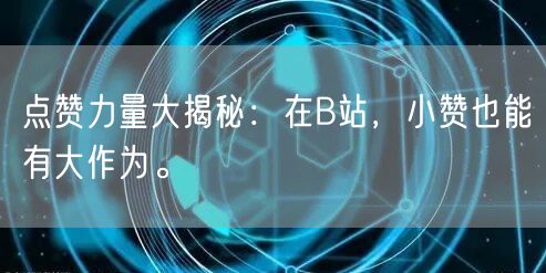 在当今这个数字化飞速发展的时代,B站作为年轻人聚集的创意社区,早已不仅仅是观看视频的简单平台,它更是一个充满活力、互动频繁的社交空间。在这个空间里,每一个细微的动作都可能蕴含着巨大的能量,而其中最为人熟知却又常被低估的,便是那轻轻一点——“点赞”。今天,就让我们一同揭开B站点赞的神秘面纱,探索小赞如何在B站社区中发挥大作为。