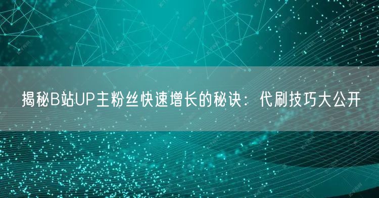 在B站这个充满活力的视频创作平台上,每一位UP主都渴望自己的作品能被更多人看见,粉丝数量成为衡量影响力的重要指标。然而,面对激烈的竞争环境,部分UP主开始寻求“捷径”——代刷服务,以期快速提升粉丝量。本文将深入揭秘B站UP主粉丝快速增长的“秘诀”,同时剖析代刷技巧背后的真相与风险,强调内容创作与账号安全的核心地位。
